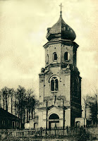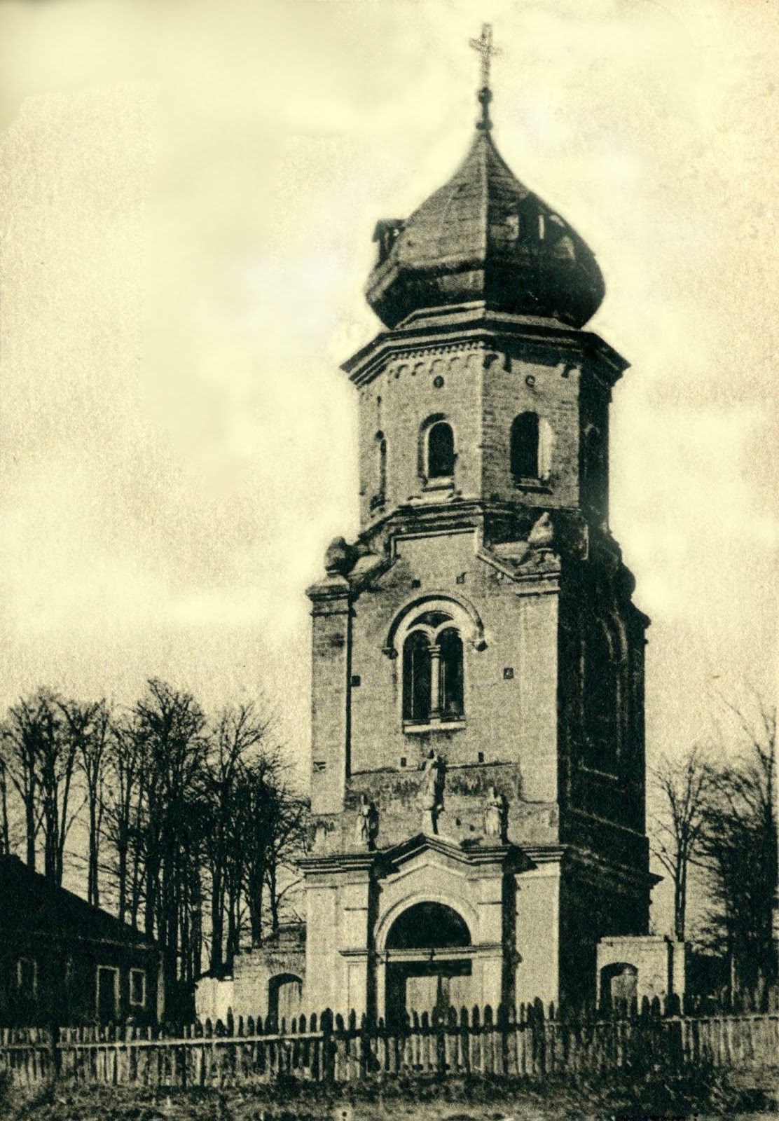 У 1837 р була збудована велична дзвіниця (Мал. 9-1, 9-2, 9-3, 9-4.) в романському стилі з фігурами в центрі Ісуса Христа, а по боках – святі.