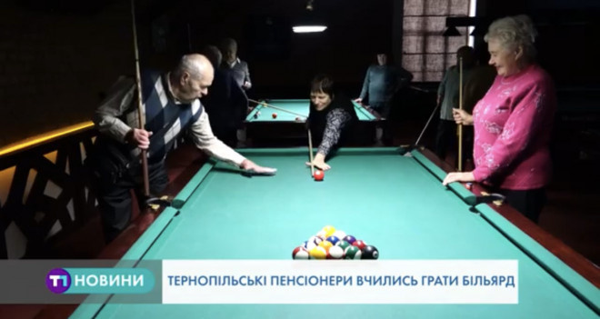 Тернопільські пенсіонери вчились грати більярд. Таку розвагу для них організував Тернопільський міський територіальний центр соціального обслуговування населення.