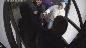 Так, з кадрів помітно, як кілька парубків гуртом втискуються в ліфт. Один з юнаків перед тим, як потрапити до кабінки викидає в газон пляшку. Згодом компанія грубо повертає камеру відеоспостереження в ліфті у зворотній бік — до стіни.