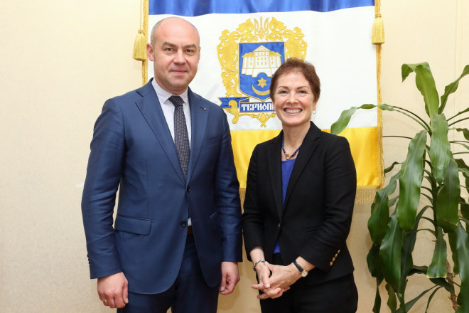 Тернопільщину відвідала Надзвичайний і Повноважний Посол США в Україні Марі Йованович. Під час візиту вона зустрілася з міським головою Тернополя Сергієм Надалом.