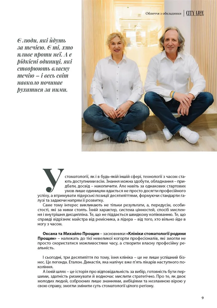 Оксана та Михайло Прощин – засновники «Клініки стоматології родини Прощин» – належать до тієї невеликої когорти професіоналів, які змогли не просто скористатися можливостями часу, а створити власну професійну реальність.