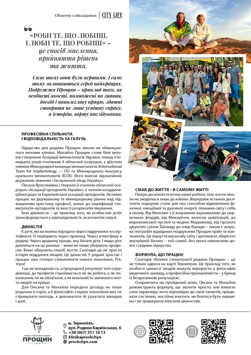 Сьогодні «Клініка стоматології родини Прощин» – це не тільки адреса на карті Тернополя. Це приклад того, як особисті цінності лікарів можуть перерости у філософію медичного закладу, а професійна принциповість – у бренд із бездоганною репутацією.