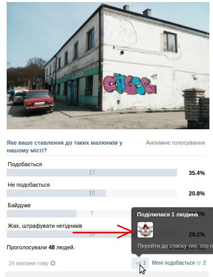 Як видно з фото – свої мазюкання вони підписують, а також зробили репост опитування щодо оцінки “шедевру”, яке тягне на адмінпротокол.