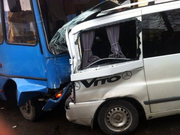 Водій автобуса полтавської реєстрації скоїв ДТП у центрі міста. Внаслідок аварії одна людина знаходиться в відділені інтенсивної терапії райлікарні, також пошкоджено п’ять автівок «Opel Vectra», «Mercedes-Benz Vito», «Daewoo Lanos», ВАЗ і «Opel Vivaro».