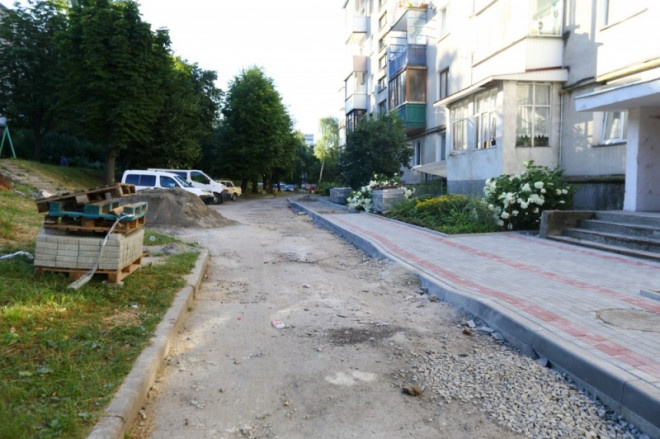 Пішохідну зону облаштовують у дворі на вулиці Чалдаєва у Тернополі (фотофакт)