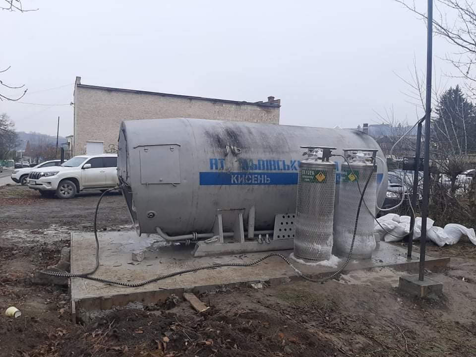 Спеціалізовану ємкість для збереження і газифікації рідкого кисню встановили біля корпусу однієї з районних лікарень області.