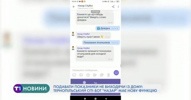 В міській раді планують, що тернополяни також зможуть подавати через бота і показники гарячої води, електрики та газу.