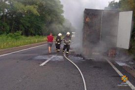 11 липня о 07:03 на пункт зв’язку 20-ї державної пожежно-рятувальної частини надійшло повідомлення про пожежу вантажного автомобіля-рефрижератора РЕНО Преміум, на автодорозі Львів – Кропивницький – Знам’янка, поблизу с. Кам’янки Підволочиського району.