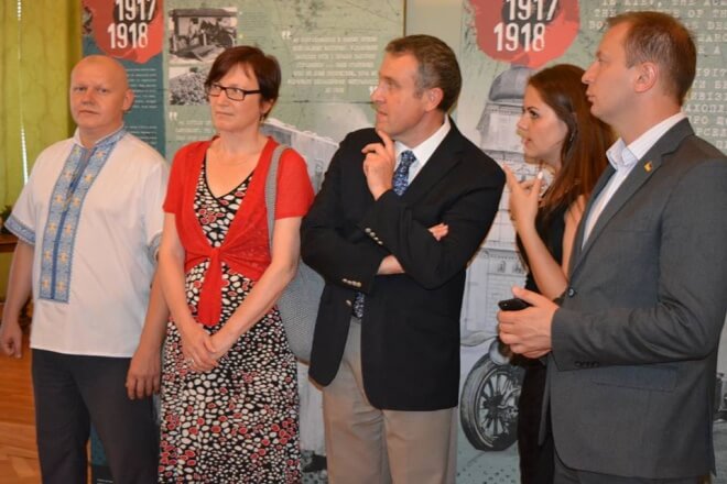 Його приїзд присвячений відкриттю виставки історії Бельгійського бронедевізіону, який рівно сто років тому перебував на території Галичини. Цікаво, що штаб бронедевізіону був розміщений в Збаражі, в будинку тодішнього спортивного товариства Sokol, де зараз будинок культури.