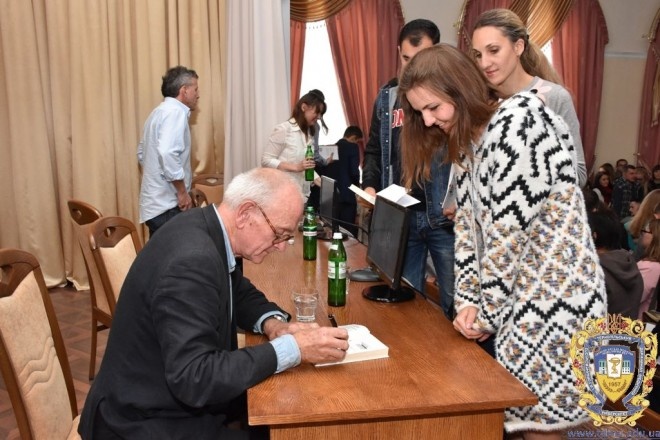 Після цього відбулася довгоочікувана зустріч студентів ТДМУ з британським нейрохірургом. Актова зала в адміністративному корпусі, що на Майдані Волі, 1, не змогла вмістити всіх бажаючих, тому у сусідній аудиторії організували трансляцію лекції. Переглянути виступ Генрі Марша в он-лайн режимі можна було і на сайті ТДМУ.