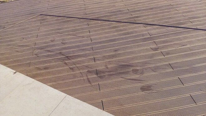 І ось знову маємо нову скаргу про молодих людей, які замість скейтпарку використовують територію покриту композитною терасною дошкою :(, яка не призначена для катаннях на скейтах чи подібних засобах. Дана зона призначена для гуляння, сидіння, лежання…, але аж ніяк для екстрим катання.