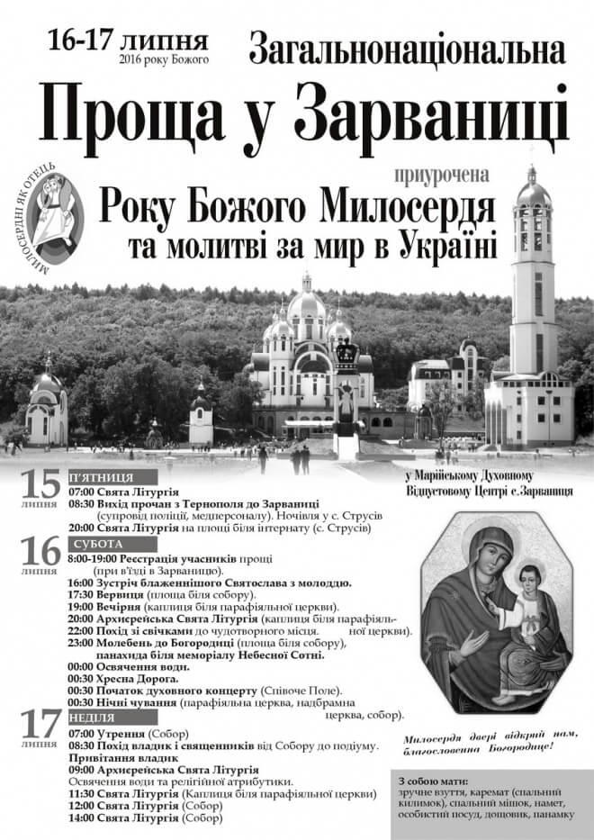 У липні на Зарваниці відбудеться Всеукраїнська проща. Священники оприлюднили програму на 15-17 липня. Запрошують усіх вірян!