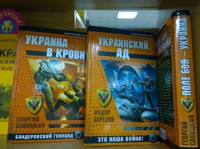 Свежие публикации отличаются от прошлогодних наличием всего одной новой фотографии, но зато какой! На ней изображены книги откровенно сепаратистского содержания. И продаются эти издания, как утверждают авторы, якобы в Свято-Почаевской Лавре. Таким образом, журналисты усовершенствовали и без того «талантливый» прошлогодний материал тернопольского ресурса.