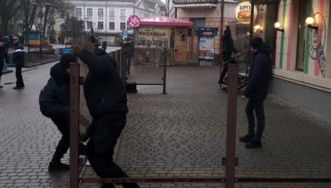 У центрі міста демонтовано тимчасову споруду – літній майданчик, який розміщено на вулиці Гетьмана Петра Сагайдачного (біля ЗРГ «Бенеддето»).