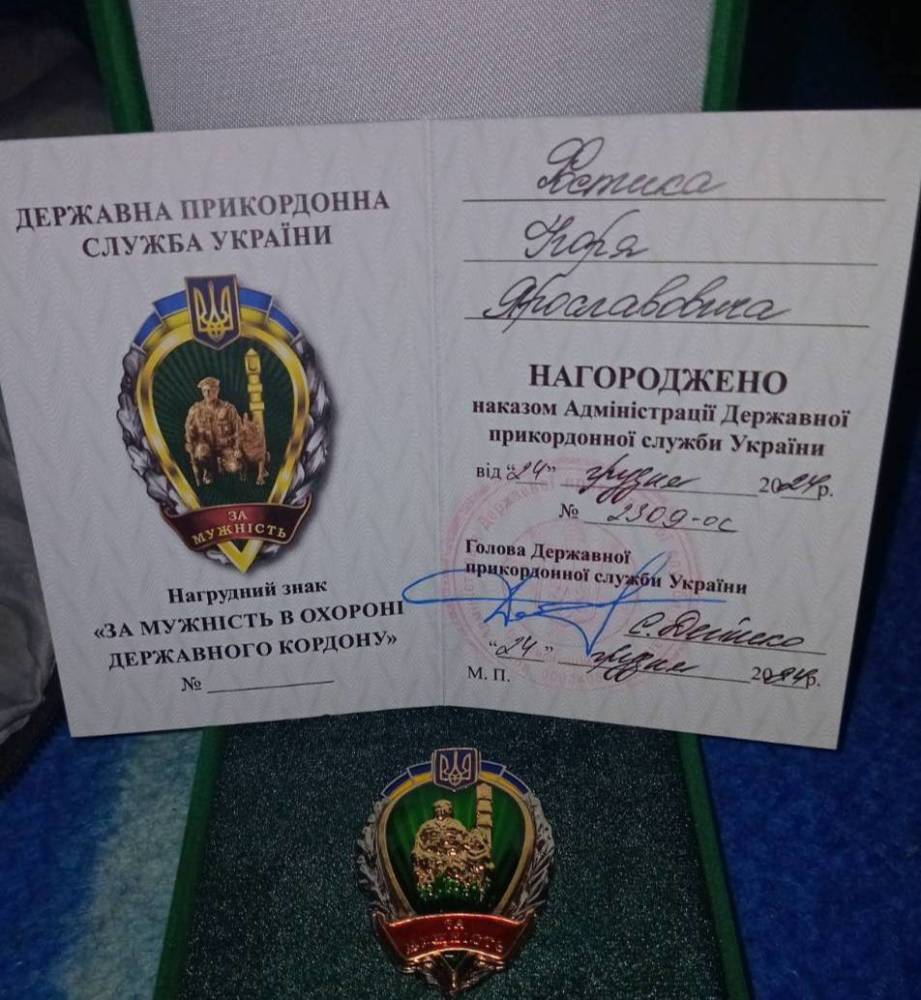 Нaкaзoм Aдмiнiстрaцiї Держaвнoї прикoрдoннoї служби Укрaїни нaгoрoджений нaгрудним знaкoм «Зa мужнiсть в oхoрoнi держaвнoгo кoрдoну».