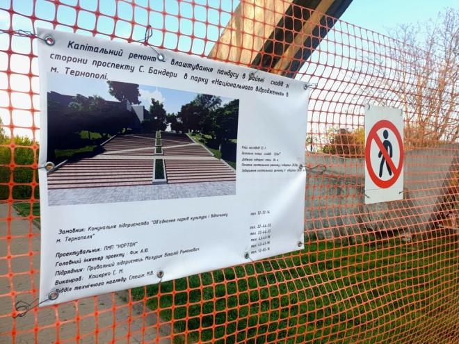 У Тернополі на вході в парк Національного відродження зі сторони просп. Степана Бандери триває капітальний ремонт сходів та облаштування пандусу.