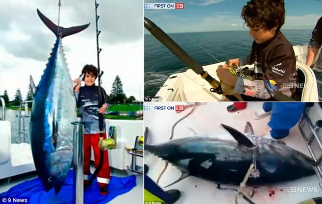 Гігантського тунця вагою 116 кілограмів спіймав 10-річний Даніель Лазаревські. Хлопчику вдалося встановити світовий рекорд.