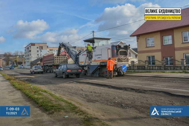 У рамках програми Президента Володимира Зеленського «Велике будівництво» розпочали відновлення маршруту Теребовля – Дарахівське перехрестя. Підрядна організація вже фрезерує старе покриття у межах міста.