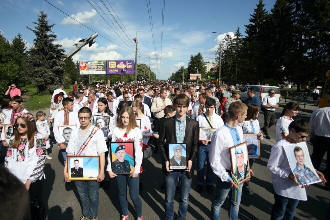 2_230516_MG_7569У понеділок 23 травня Тернопіль і вся Україна відзначила День Героїв. З нагоди свята понад 1,5 тис тернополян взяли участь у марші в вишиванки під синьо-жовтими та червоно-чорними прапорами.