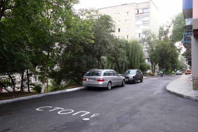 Ремонт у дворах будинків на вул. Тролейбусна розпочався ще минулого року, тоді було облаштовано лише пішохідну доріжку. Цього року у дворі будинку №2 роботи завершено, зокрема розширено та відремонтовано проїжджу частину, облаштовано відмостки та водовідведення, на прохання мешканців встановлено дитячий майданчик та перенесено сміттєві баки.