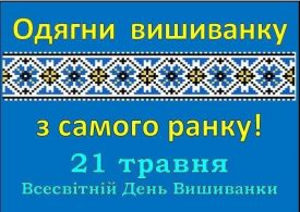 Інформацію взяти із офіційної фейсбук сторінки- Всесвітній день вишиванки
