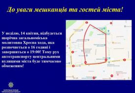 У неділю,14 квітня, відбудеться щорічна загальноміська молитовна Хресна хода, яка розпочнеться о 16 годині і завершиться о 19:00.