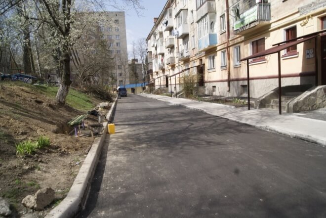 На вулиці Миру, 11 та 12 у Тернополі провели капітальний ремонт. Тут повністю забрали старе і розбите покриття, заасфальтували дорогу та плиткою вклали тротуари.