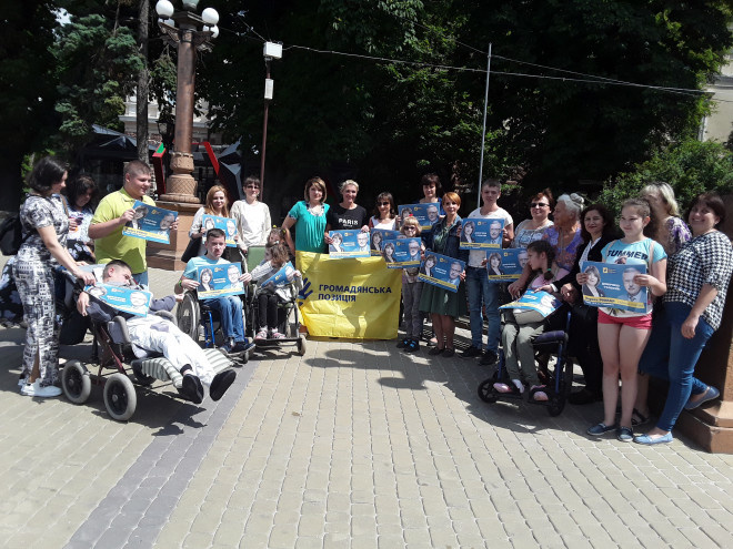 Мами, які є членами громадської організації «Спілка батьків дітей, які хворіють дитячим церебральним паралічем «Крила ангела» у понеділок зібралися на Театральному майдані на акцію підтримки своєї колеги Лариси Римар,
