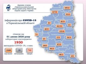 Станом на 01 липня 2020 року в Тернопільській області за результатами досліджень у 11 осіб виявлені позитивні результати.
