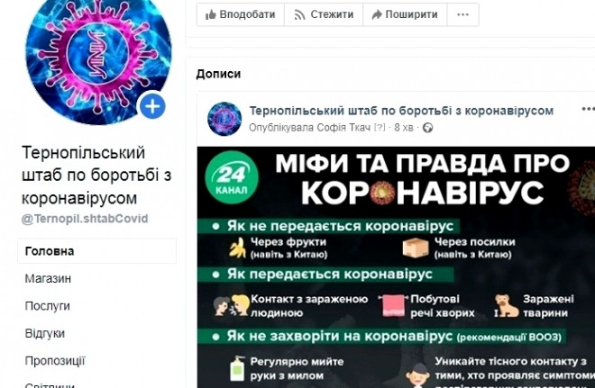 Для долучення до facebook-сторінки необхідно перейти за посиланням https://www.facebook.com/Ternopil.shtabCovid