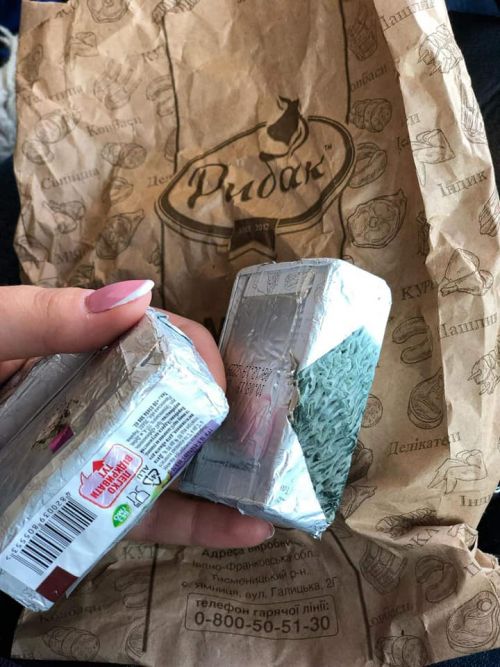 — Сьогодні зробили покупку сирків в м. Бережани в магазині “Рибак”. Приїхав додому, розпакував – і ось вам результат. Цвітуть і пахнуть! Після цього відвіз їх назад в магазин. Від продавців замість слова “вибачте” почув: “Нічого страшного, зараз ми вам поміняємо на інші”. Серйозно?! Та я після цього навіть не хочу більше в них щось купляти. Будьте обережні, коли щось обираєте в цьому магазині! Слідкуйте за датою виготовлення! — повідомив покупець.