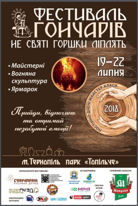 З 19 по 22 липня у парку Топільче (на Козацькому острівку) відбудеться всеукраїнський фестиваль гончарів «Не святі горшки ліплять», під час якого учасники зі всіх куточків країни презентуватимуть свою творчість.