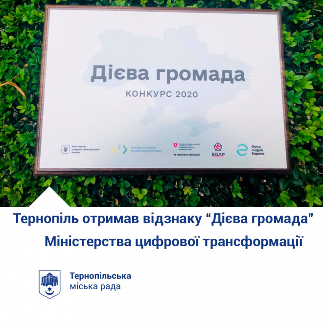 Днями Тернопіль отримав відзнаку від Міністерства цифрової трансформації України “Дієва громада”