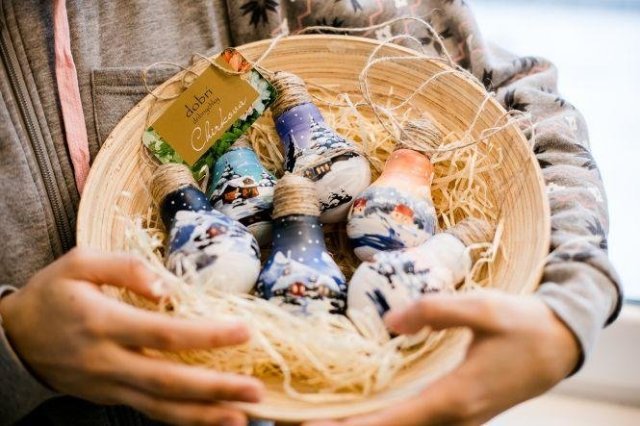 Друге життя використаним електричним лампочкам дає тернопільська художниця Ольга Чіркова. Вона перевтілює їх у ексклюзивні ялинкові прикраси.