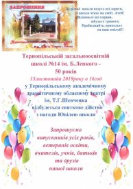 Тернопільській загальноосвітній школі № 14 ім. Б.Лепкого – 50 років.