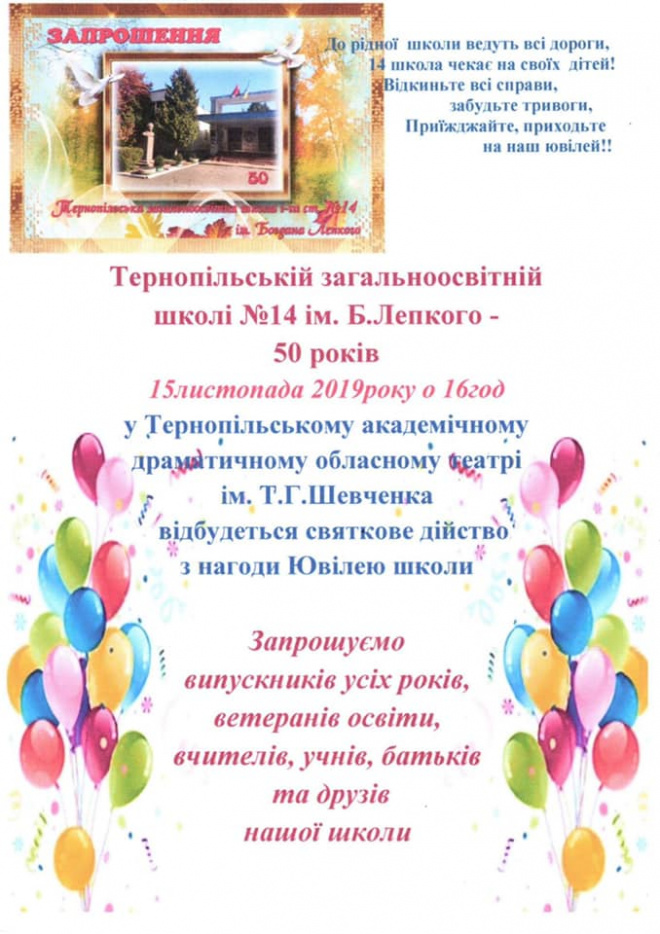 Головна » Новини » Тернопільська школа святкує півстолітній ювілей