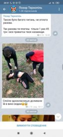 «Позор Тернополя» – саме так називається анонімний чат у «Телеграм-каналі» та «Інстаграмі». На сторінці каналу адміністратор виставляє фото провокаційного характеру з інформацією про жертву, яка зображена на ньому. Суть цієї «гри» у тому, аби спіймати свого товариша на чомусь непристойному. А допомогти в цьому може випитий алкоголь. Під одним із постів зустрічаємо слова: «Надія О. 15 років, Тернопільська область, буха в хлам» або інше: «Розвів малишку на секс. Район центр, малій 17 років». На фото чітко зображено оголене тіло дівчинки, яку без тями тягнуть до ванної кімнати парубки. Адміністратор групи називає себе Соня Вітенко. На вигляд дівчині приблизно 18 років. За найбільш провокаційні фото вона обіцяє виставляти особисті інтимного характеру. В цьому анонімному чаті понад мільйон підписників. За вступ туди дівчині на банківську картку слід перерахувати 45 грн. Після цього вона приймає ваш запит і ви маєте повний доступ до фото та відеоматеріалів.