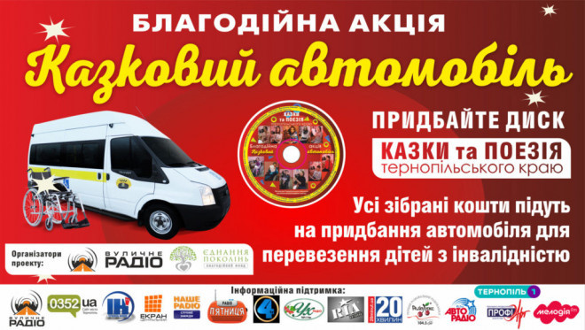 На усі зібрані кошти організатори збираються придбати автомобіль для перевезення дітей з інвалідністю. Бо в Тернопільському обласному навчально-реабілітаційному центрі навчається 158 діток з вадами опорно-рухового апарату, 30 з яких пересувається на інвалідних візках.