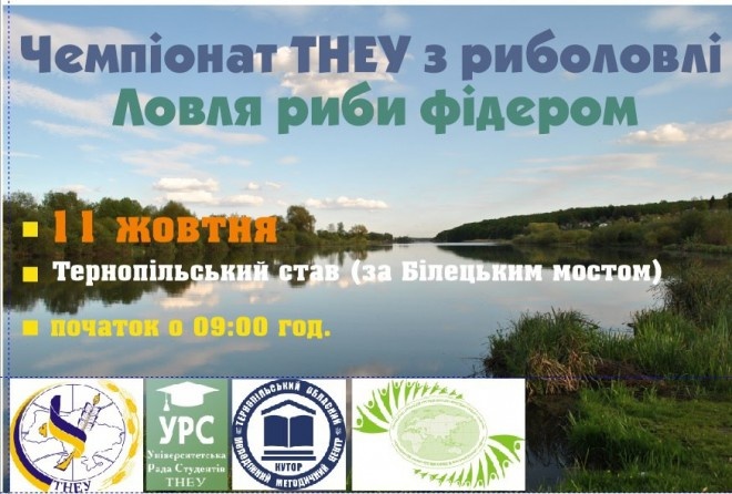 Тернопільський університет проведе власний Чемпіонат з риболовлі. Проводить його ТНЕУ 11 жовтня на гребному каналі тернопільського ставу.