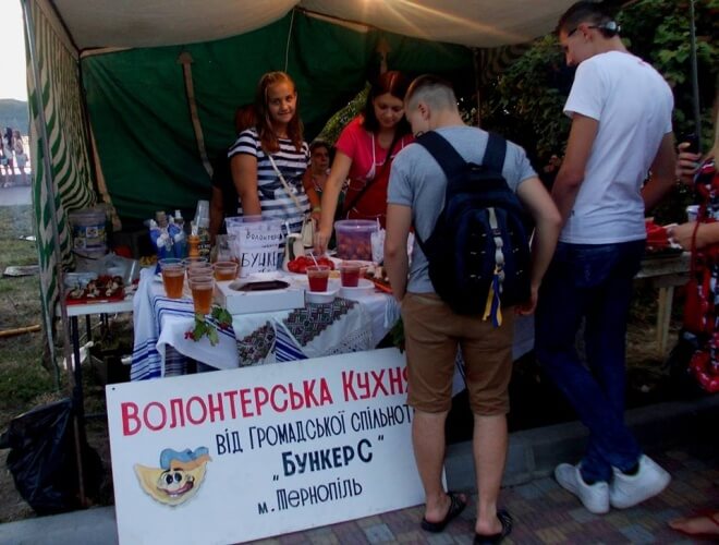 Тернопільські волонтери “Бункеру С” радо пригощали усіх охочих варениками та стравами на День міста.