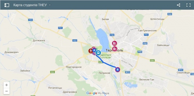 Саме тому працівник відділу інформації та зв’язків з громадськістю ТНЕУ Тарас Романів підготував мапу для новачків, на якій позначені та розподілені за призначенням об’єкти на території студмістечка вищого навчального закладу.