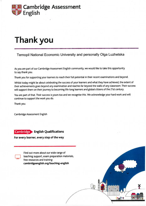 Cambridge Assessment English висловив слова підтримки і подяки Західноукраїнському національному університету.