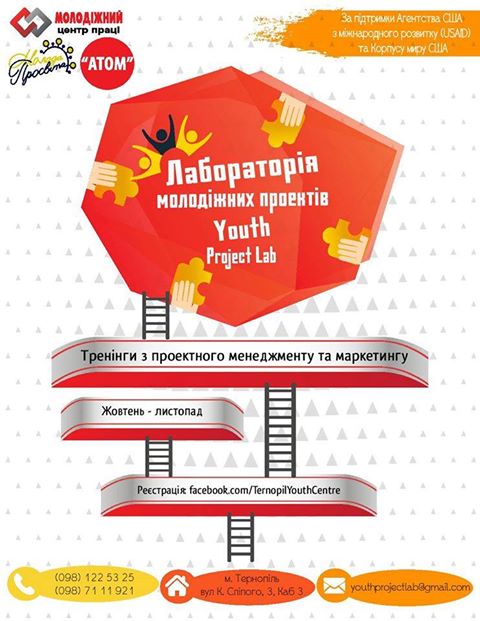 “Лабораторія молодіжних проектів,” це проект для членів молодіжних громадських організацій, ініціативних груп та просто активних молодих людей, які хочуть покращити свої знання та отримати практичні навики з проектного менеджменту та маркетингу