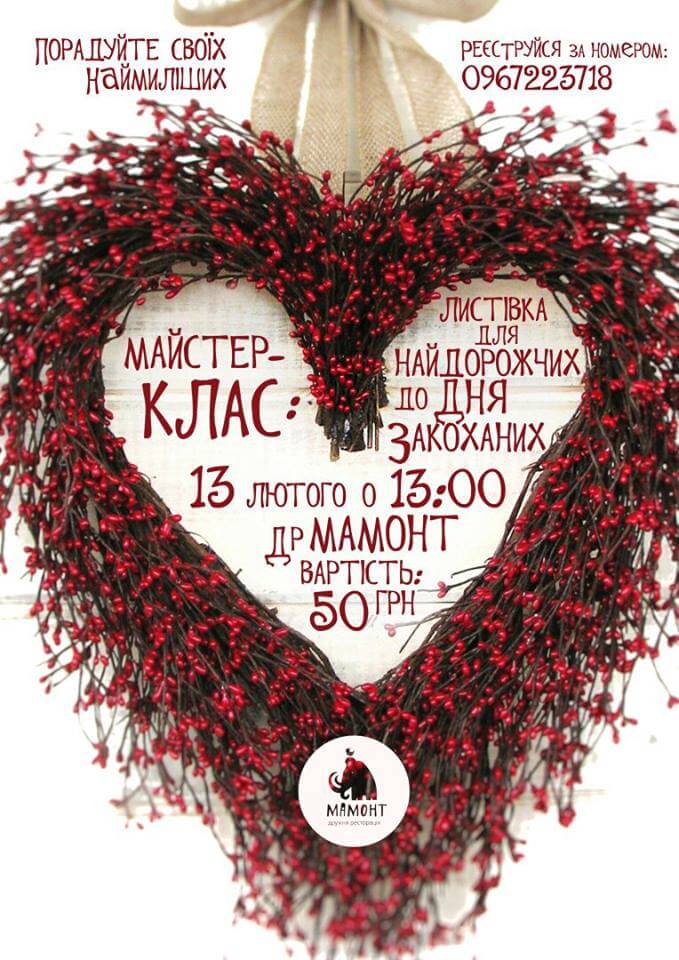 13 лютого о 13:00 год. тернополяни матимуть змогу навчитися виготовляти святкові листівки до Дня закоханих.