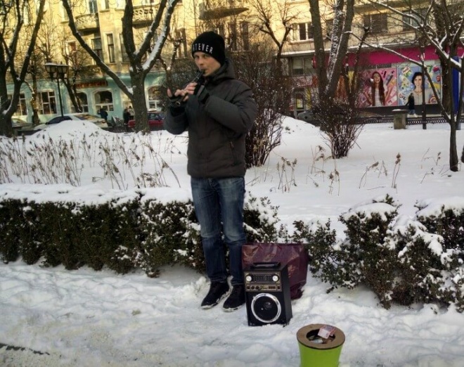 Перше, що привернуло увагу – чудова мелодія усім відомої пісні гурту «ABBA» «Happy New Year», яку віртуозно виконував на сопілці молодий музикант. Жодного перехожого не могла залишити байдужим його музика і мало не кожен клав у його капелюх пару гривень.