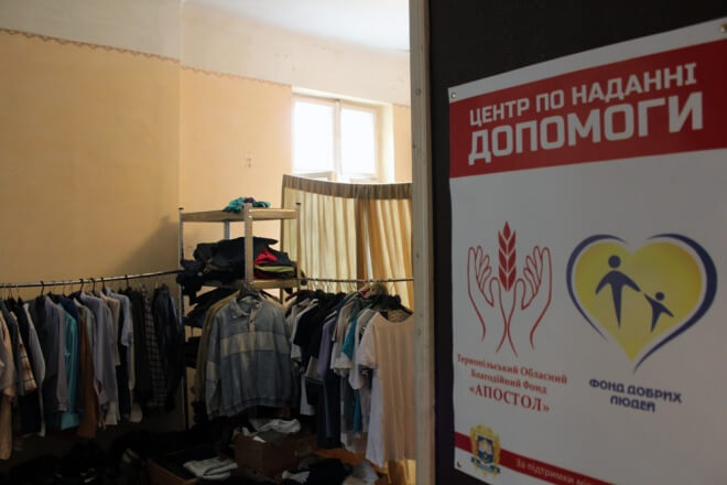Другий центр діє у приміщенні управління соціально політики за адресою вул. Лисенка, 8. Він працює двічі на тиждень – у вівторок та четвер. Там отримують речі тернополяни, які перебувають на обліку в управлінні соціальної політики міськради.