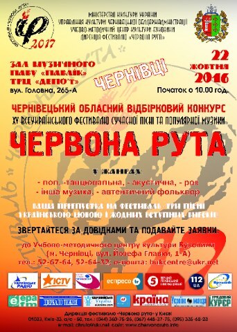 “Червона рута” найбільший та найстарший Всеукраїнський фестиваль сучасної пісні та популярної музики, який протягом 25-річної діяльності сформував українську національну масову музику і виконує місію патріотичного виховання молоді.