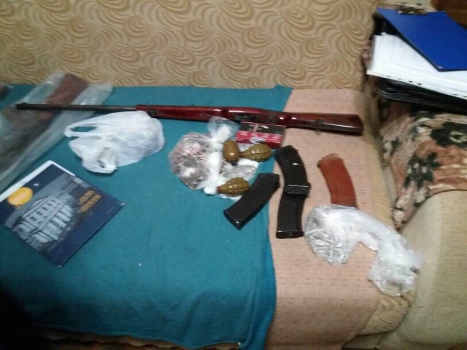 Під час обшуку у його квартирі вилучено гвинтівку ТОЗ-8, дві гранати Ф-1, гранату РГД-5, запали до них та понад 180 набоїв різного калібру. Злочин викрито спільно з працівниками Служби безпеки в області .