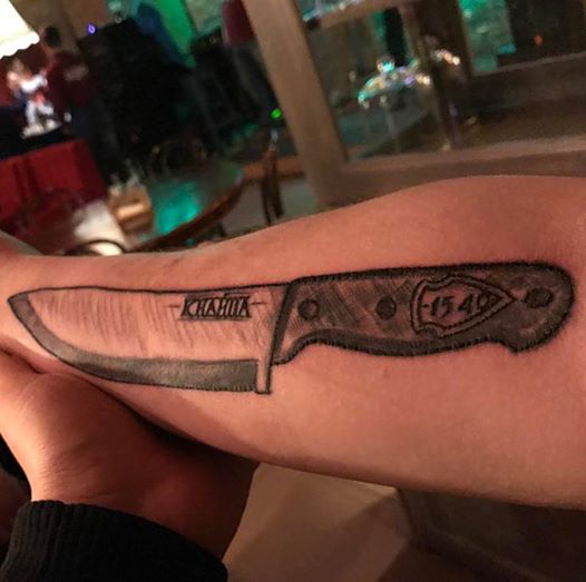 Кухар тернопільської Кнайпи 1540 зробив тату у вигляді величезного ножа із назвою закладу. На фото можна добре роздивитися зображення.