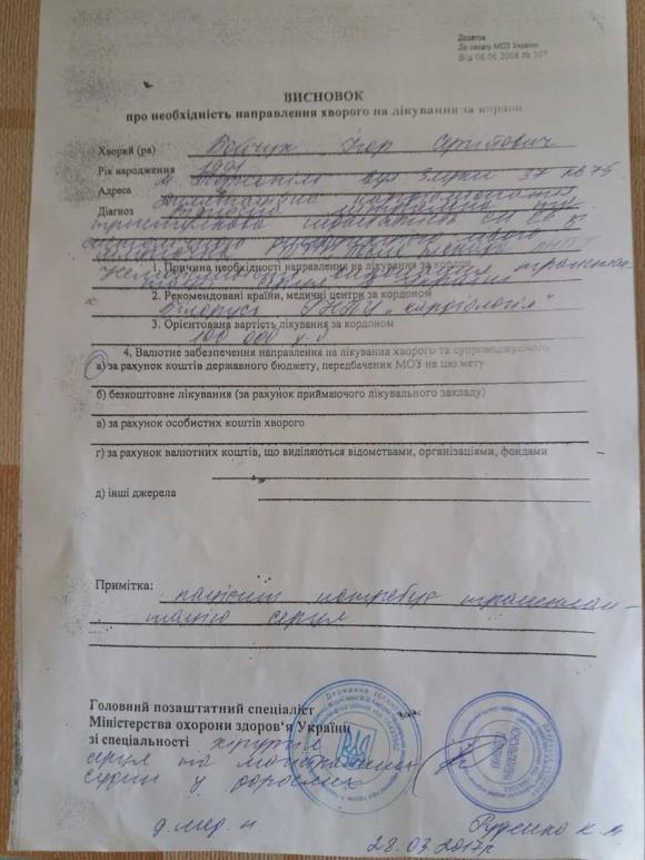– 100 тисяч доларів нам виділяє держава, але потрібно ще 50 тисяч доларів. А для нас це непідйомна сума, – каже жінка. – Лікарі сказали, що з таким діагнозом, якщо не зробити трансплантацію, чоловік проживе до року часу. І операція – єдиний вихід, оскільки такі випадки невиліковні. Зараз Ігор на підтримуючому лікуванні, але лікарі кажуть, що і воно скоро перестане допомагати.